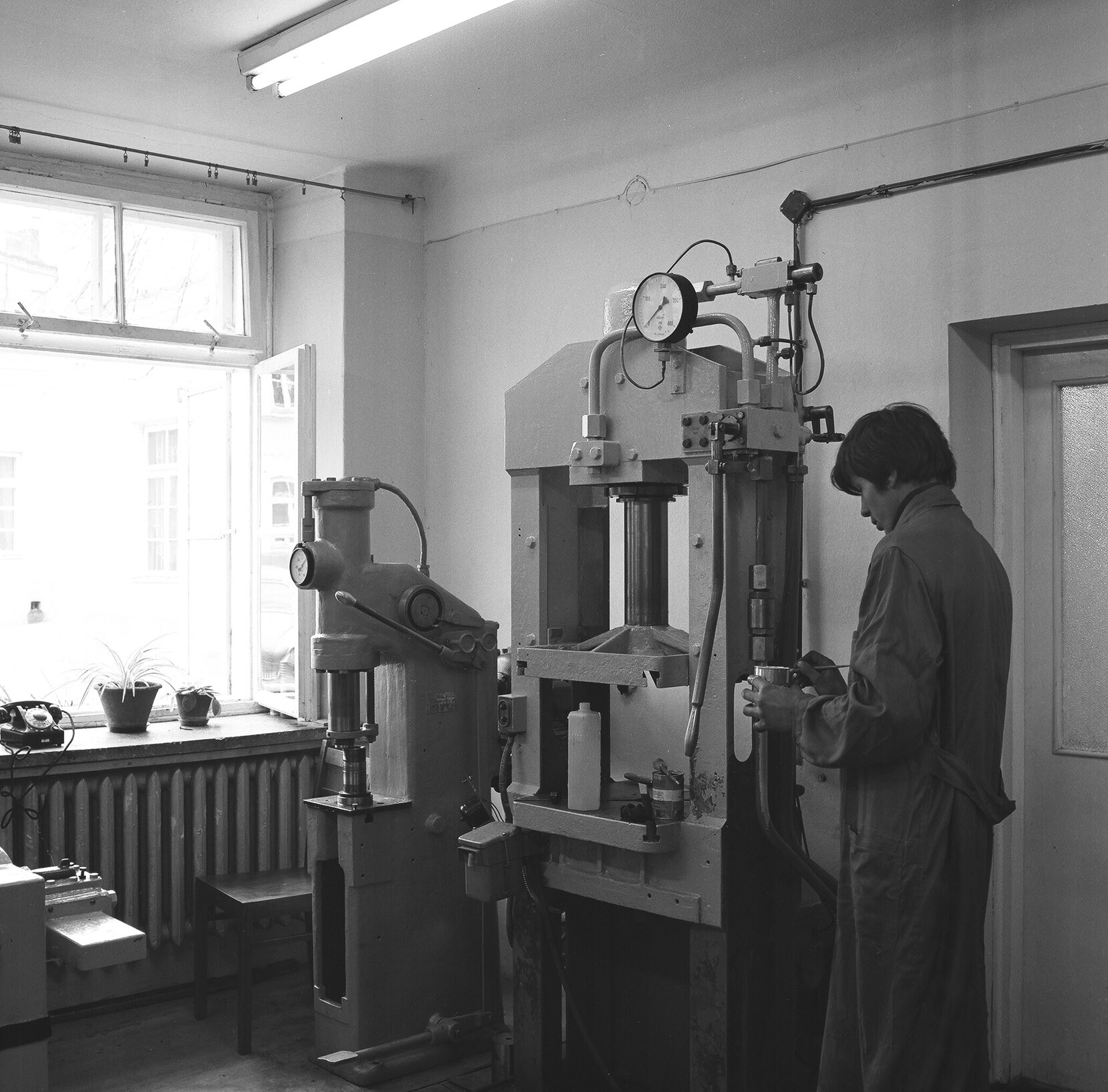 The Plastic Processing Laboratory at the Higher School of Engineering in Lublin (interior fragment). Archival negative taken around 1971.